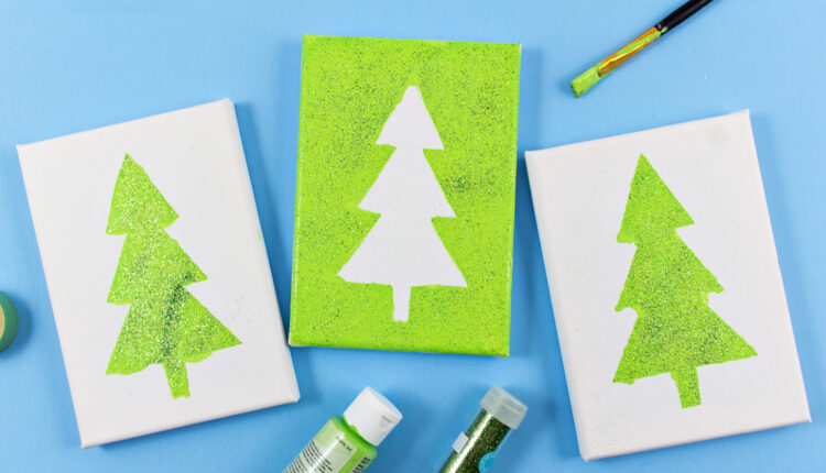 - Place the stencil over the canvas, or define a Christmas tree on the canvas utilizing tape.