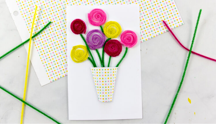Seize colourful pipe cleaners, card inventory, enjoyable paper, and let’s make a home made flower card.