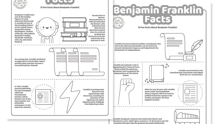We put these Ben Franklin details in two printable coloring pages so your children can coloration as they find out about Benjamin Franklin’s innovations, achievements, and life.
