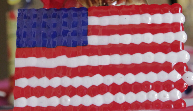 Add beads to your pan to appear to be the American flag.