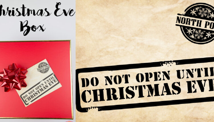 Christmas Eve Box Holiday Tradition- white page that says: Do not open until Christmas Eve with north pole