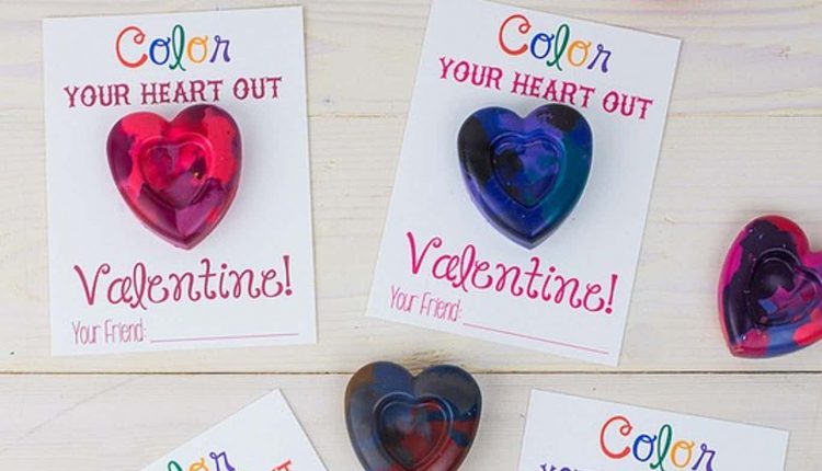 - Crayon themed, “Coloration your coronary heart out, Valentine!”