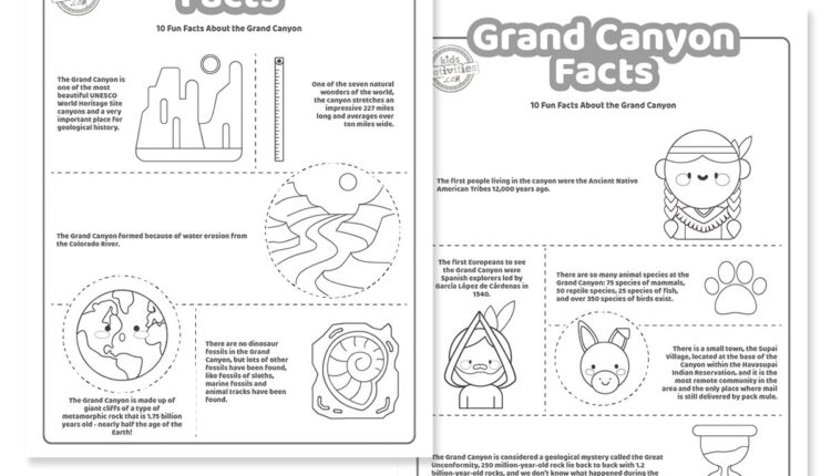 At the moment we’re studying all concerning the Grand Canyon with our Grand Canyon information printable pages! Let’s be taught some enjoyable information concerning the deepest canyon in North America. Listed here are 10 Grand Canyon information coloring pages for teenagers of all ages to paint as they find out about this spectacular pure marvel! Our printable enjoyable information pdf contains two pages crammed with Grand Canyon photos and information concerning the Grand Canyon that youngsters of all ages will get pleasure from at house or within the classroom.