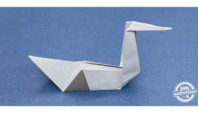 Origami Swan - Step 9 - Origami swan with the beak pulled out as a last step. Tutorial from Kids Activities Blog