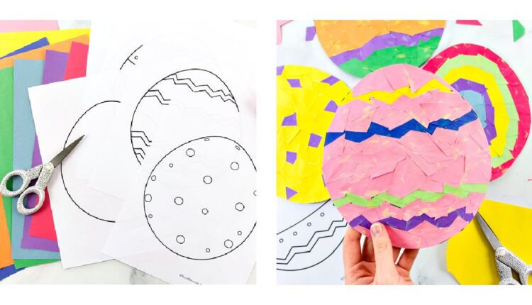 Have the youngsters minimize items of paper after which glue them over the design on the coloring web page. We even have a clean egg within the printable pack to allow them to make their very own design too.